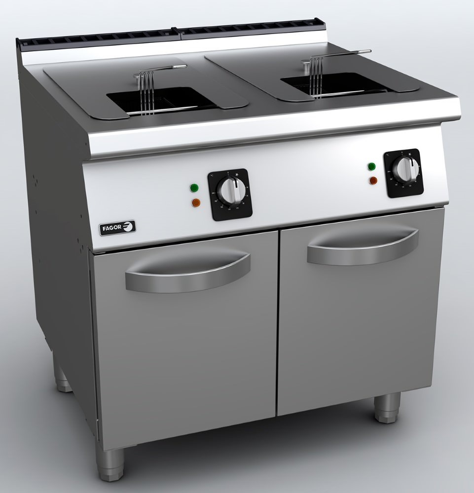 Powierzchnia wykonana ze stali nierdzewnej AISI-304 o grubości 1,5 mm. Powierzchnia wycięta za pomocą robota spawalniczego ,który dodatkowo poleruje powierzchnię. Zimna strefa w dolnej części frytownicy, która wydłuża żywotność oleju oraz zapobiega przypalaniu elementów, które spadają na dno komory. Termostatyczna kontrola temperatury, od 60 do 200 ° C. Wyposażony w indywidualne pokrywy dla każdej komory smażenia.Spuszczanie oleju z komory przez mechaniczny zawór kulowy, który jest solidny, niezawodny i odporny na wysokie temperatury. Urządzenie o dużej mocy, które szybko się nagrzewa i ma wysoki stosunek mocy do litra (do 1,00 kW / litr). Model gazowy z trzema podłużnymi rurkami do wymiany ciepła wbudowanymi w komorę. Wysokowydajne palniki gazowe. Liczba komór: dwie z 15 litrami pojemności, 2 duże kosze (250 x 280 x 100 mm).Podmiot odpowiedzialny (GPSR):