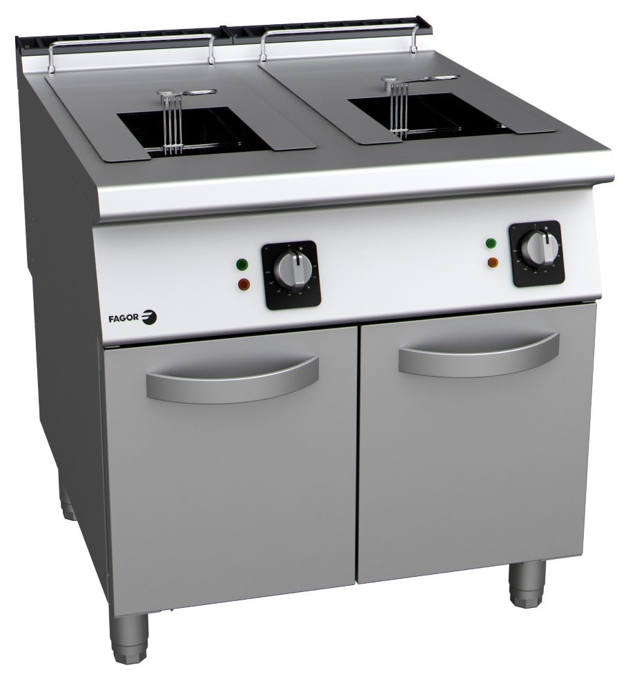Pojemność komory wynosi 2x 15 litrów. Duża moc grzewcza, wyposażenie: 2 kosze 250x280x100mm Zimna strefa na dnie komory, zwiększająca żywotność oleju. Temperatura pracy regulowana termostatem w zakresie 60–200°C. Odpalanie palników za pomocą zaworu elektromagnetycznego z pilotem i termoparą. Spust oleju poprzez zawór spustowy w szafce pod komorą. Pojemność jednego kosza: 5 kg. Wydajność 1 komory: 30 kg/godz.Podmiot odpowiedzialny (GPSR):