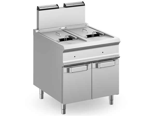 Blat ze stali nierdzewnej AISI 304 18/10 o grubości 2 mm Komory ze stali nierdzewnej głęboko tłoczonej AISI 304 o szerokim promieniu, ułatwiające czyszczenie Ciągłe spoiny komór (bez szczotkowania), co zapewnia wytrzymałe łączenie Wszystkie modele wyposażone w termostat bezpieczeństwa Duża „strefa zimna“, pozwalająca utrzymać niezmienioną jakość oleju przez dłuższy czas i zapewniająca łatwiejsze usuwanie pozostałości po smażeniu Palnik gazowy z płomieniem poziomym, regulacją temperatury za pomocą termostatu w zakresie od 90° do 190°C, z zaworem bezpieczeństwa i termoparą Piezoelektryczny zapalacz Kulowy zawór spustowy oraz pojemnik na olej, 1 sztuka na urządzeniePodmiot odpowiedzialny (GPSR):