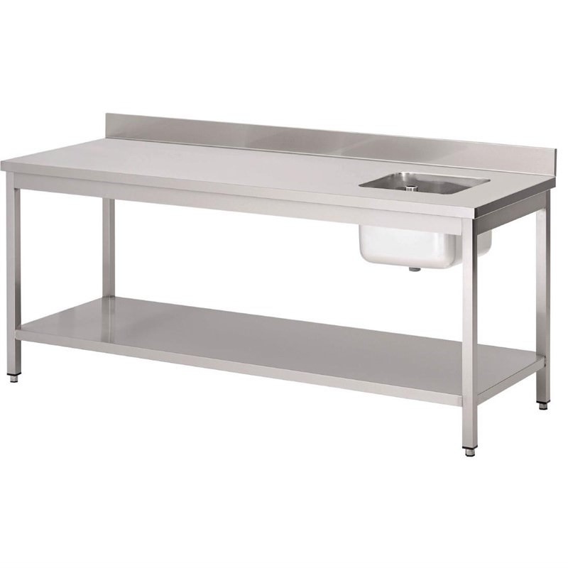 Stół ze zlewem i rantem został wykonany ze stali nierdzewnej AISI 430. Standardową wysokość roboczą 85 cm można zwiększyć do 90 cm za pomocą regulowanych nóżek. Blat roboczy został wzmocniony melaminową płytą o grubości 18 mm.
