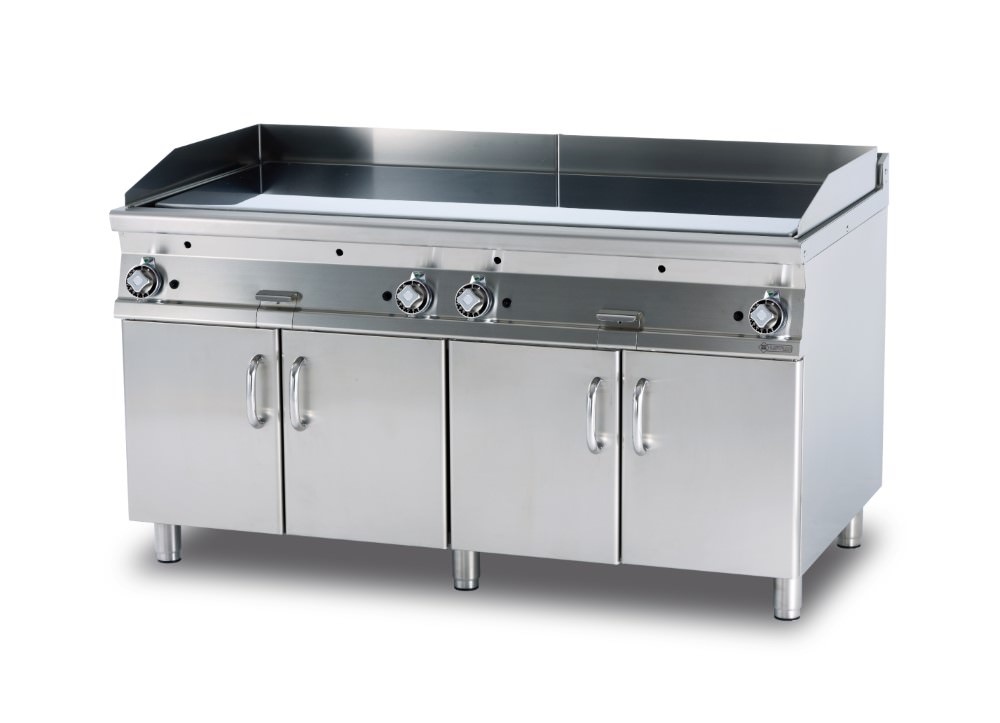 Gazowa płyta grillowa 1505 x 650 mm, gładka, Superchromowana, 4 strefy grzewcze, 36 kW na podstawie z szafką
