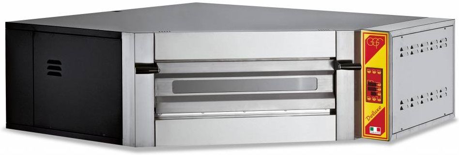 Profesjonalny piec do pizzy wykonany ze specjalną komorą pieczenia dostosowaną do pizz i bułek w różnych rozmiarach. Urządzenie posiada front i komorę ze stali nierdzewnej izolację z odparowanej wełny mineralnej wysokiej gęstości, powierzchnię pieczenia z kamienia ogniotrwałego, pirometr i wewnętrzne oświetlenie halogenowe.