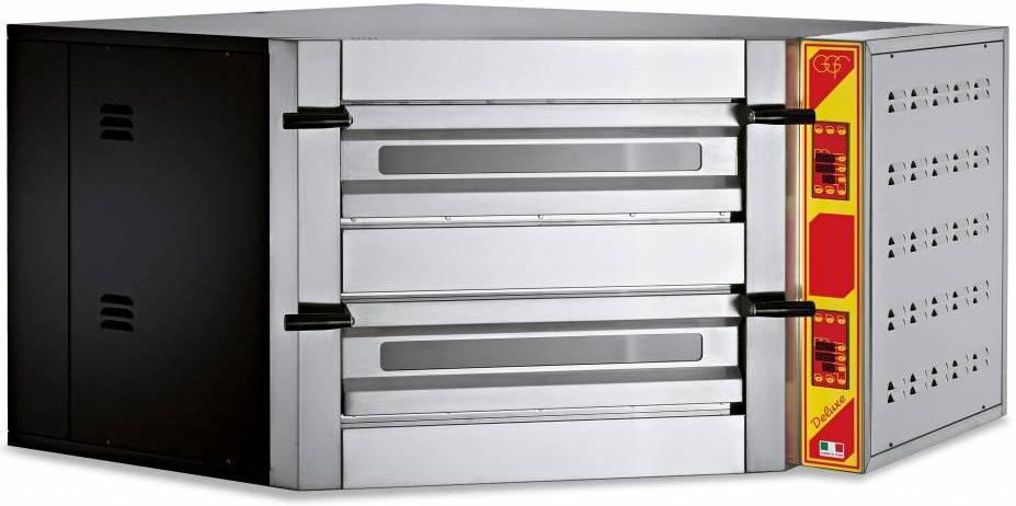 Profesjonalny piec do pizzy wykonany ze specjalną komorą pieczenia dostosowaną do pizz i bułek w różnych rozmiarach. Urządzenie posiada front i komorę ze stali nierdzewnej izolację z odparowanej wełny mineralnej wysokiej gęstości, powierzchnię pieczenia z kamienia ogniotrwałego, pirometr i wewnętrzne oświetlenie halogenowe. Temperaturę można regulować poprzez niezależne termostaty mechaniczne, zarówno dla góry jak i spodu pieca.