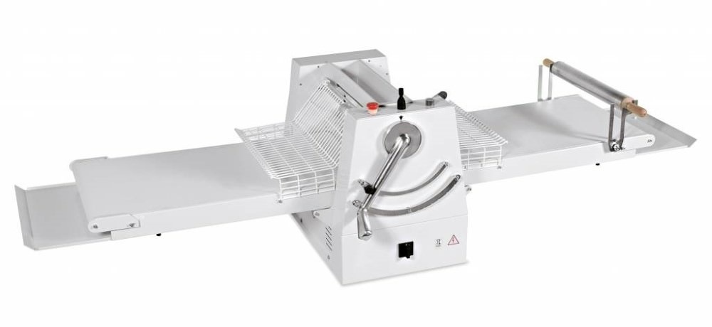 Urządzenia wykonane zgodnie z nowoczesnymi kryteriami wydajności i funkcjonalności. Mogą pracować z każdym rodzajem ciasta, nawet tym najcieńszym, dzięki sprostowanym cylindrom, bardzo precyzyjnym pasom transmisyjnym z regulowanymi prędkościami. Stalowa konstrukcja pomalowana białą farbą odporną na zadrapania, kółka i podnoszone powierzchnie robocze, aby zajmować jak najmniej miejsca gdy urządzenie jest wyłączone. Wyposażenie opcjonalne zwiera pedał, standardowy system do wycinania rogali i system do cięcia na wymiar do innych kształtów.