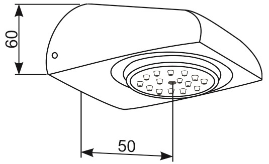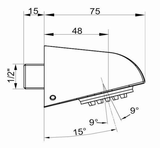 Głowica natryskowa wandaloodporna, z ruchomym sitkiem na przegubie. Przyłącza 1/2″.