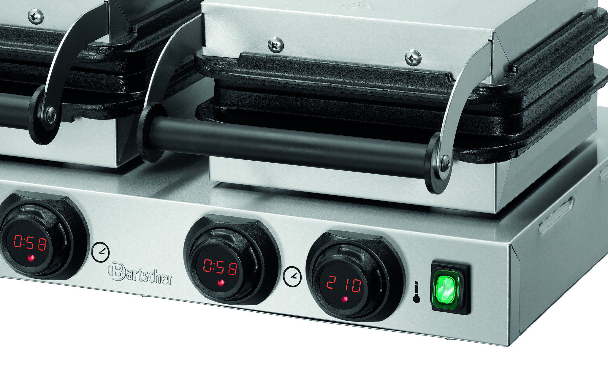 Doskonałe warunki dla idealnego gofra: solidna konstrukcja, duża moc oraz prosta i intuicyjna obsługa pokrętłem plus wyświetlacz cyfrowy, timer i sygnał dźwiękowy. Ponadto żeliwne płyty grzewcze z jednostką odpiekową w kształcie gofra brukselskiego zapewniają dobrą przewodność ciepła.Podmiot odpowiedzialny (GPSR):