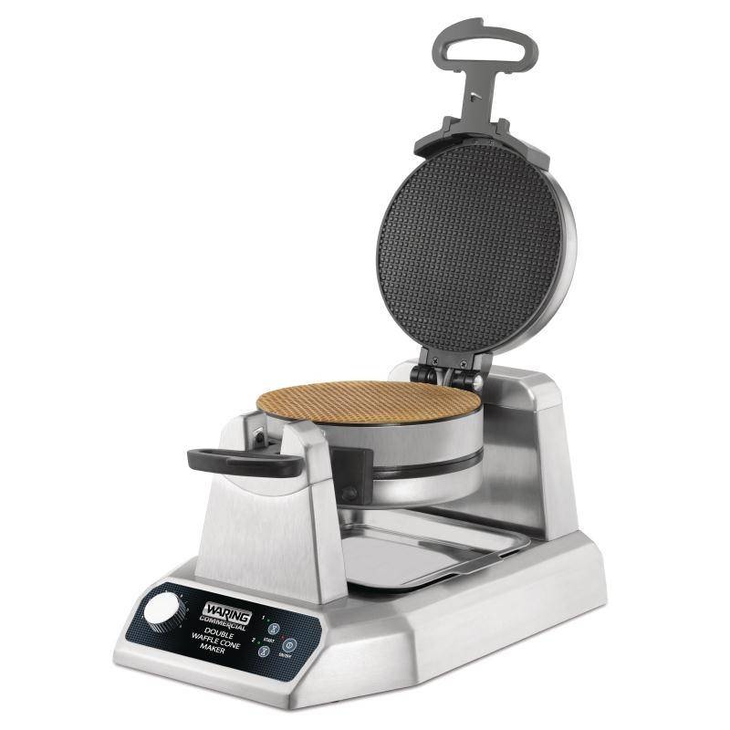 Gofrownica do rożków posiada 2 płyty grzewcze (górną i dolną). Dzięki urządzeniu można wykonać do 120 chrupiących rożków do lodów w ciągu godziny. Trzywarstwowe, nieprzywierające płyty gwarantują wafle doskonałej jakości, a regulowany timer zapobiega marnotrawstwu. Konstrukcja ze stali nierdzewnej i wyjmowana taca ociekowa ułatwiają czyszczenie.