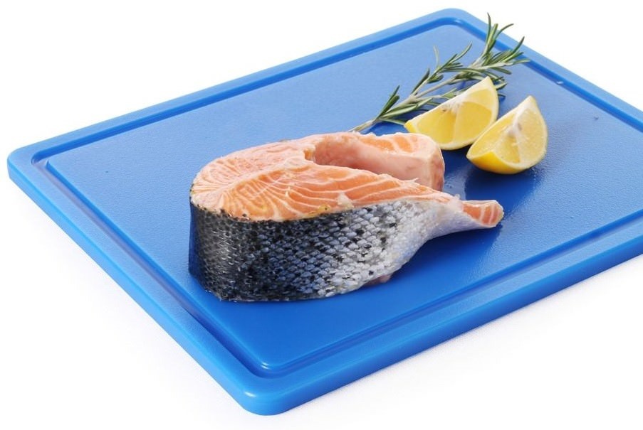 Deska do krojenia HACCP z polietylenu GN 1/2 niebieska z wycięciem