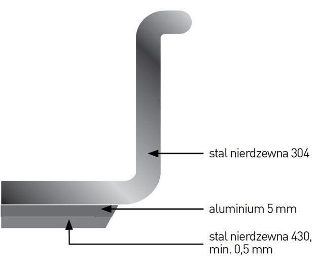 - Dno formowane jest w technologii impact bonding, co zapewnia idealne łączenie warstw i gwarantuje odporność na korozję i optymalne przewodzenie ciepła