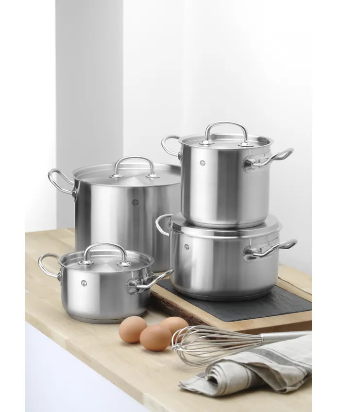 - Kapsułowe dno wielowarstwowe (stal nierdzewna–aluminium–stal magnetyczna) łączy w sobie właściwości aluminium w zakresie rozprowadzania ciepła z trwałością i właściwościami magnetycznymi stali nierdzewnej