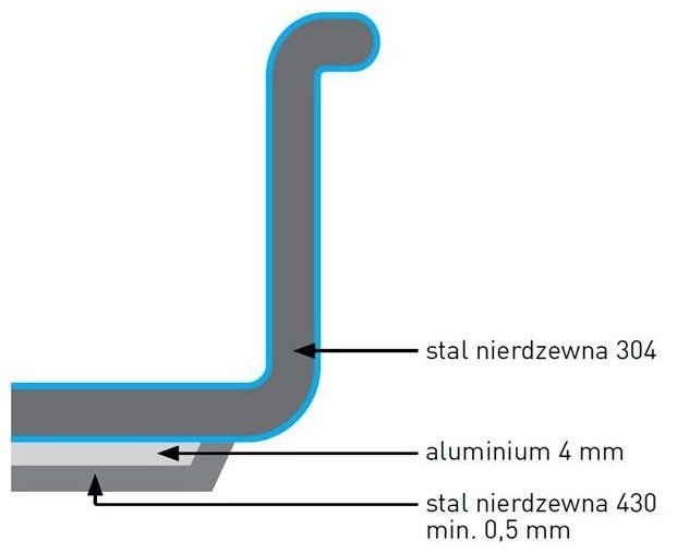 - Dno formowane w technologii impact bonding zapewnia idealne łączenie warstw gwarantując odporność na korozję i umożliwia lepszy transfer ciepła