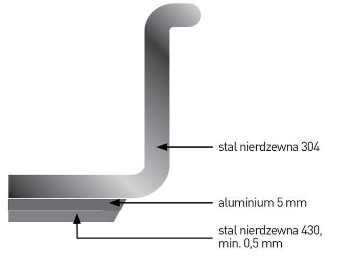 - Dno formowane jest w technologii impact bonding, co zapewnia idealne łączenie warstw i gwarantuje odporność na korozję i optymalne przewodzenie ciepła