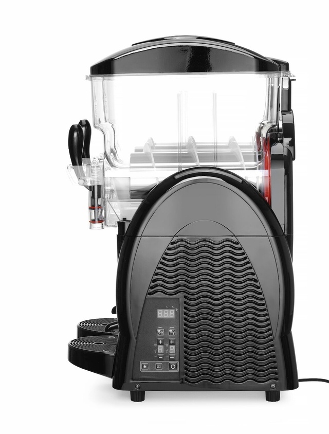 Granitor to niezastąpione urządzenie w lodziarni, kawiarni czy barze. Dzięki granitorom w atrakcyjny sposób wyeksponujesz kolorowe sorbety oraz mrożone napoje. Staranne wykonanie i użycie wysokiej jakości materiałów sprawia,że sprzęt wygląda bardzo profesjonalnie. Dzięki podświetleniu umiejscowionemu w pokrywie sorbety wyglądają apetycznie i przyciągają spragnionych.Urządzenie zostało wyposażone w dwa 12–litrowe zbiorniki z poręcznymi kranikami. Zbiorniki w prosty sposób można zdemontować i wyczyścić.Wydajny kompresor, pozwala uzyskać temperaturę od –4°C do –2°C. Dodatkowo wyposażony jest w elektroniczną kontrolę temperatury, co jest bardzo ważne przy serwowaniu zimnych napojów i napojów typu slush.Niskie koszty eksploatacji pozwalają na wykorzystanie urządzenia zarówno w dzień jak i w nocy.W zestawie tacka ociekowa.