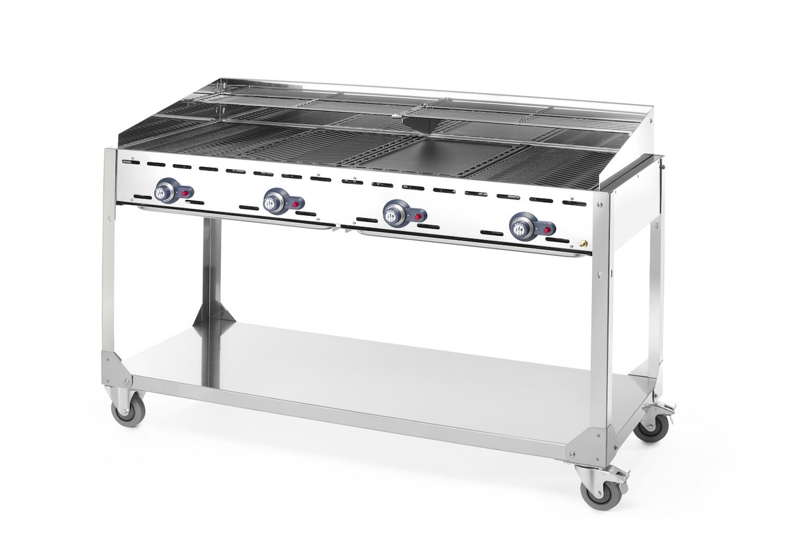 Grill gazowy Green Fire Profi Line 4-palnikowy z półką - 2 patelnie żeliwne i 2 ruszty GN1/1