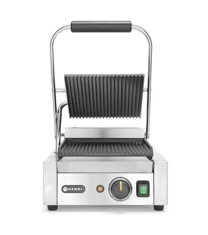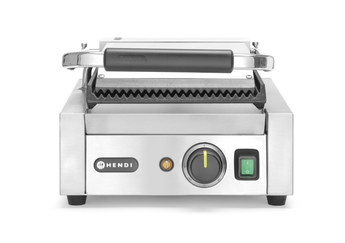 Profesjonalny grill kontaktowy marki Hendi, wyposażony w pojedyncze stanowisko grillujące, ryflowane po obu stronach. Najlepsza jakość, perfekcyjne wykonanie, niezwykła funkcjonalność sprawiają, że produkty Hendi znajdują zastosowanie w każdej kuchni. W komplecie znajduje się szczotka druciana do czyszczenia.