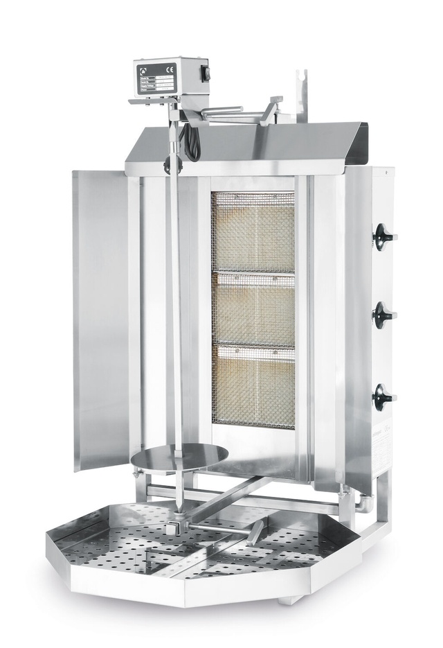 Maszyna do opiekania mięsa to niezbędne urządzanie w lokalach, w których serwuje się kebab, dania gyros czy shoarmę. Produkt rekomendowany jest dla małej i dużej gastronomi. Zasilanie gazowe pozwala także na stosowanie urządzenia w food truckach gdzie często bazowym zasilaniem jest gaz.