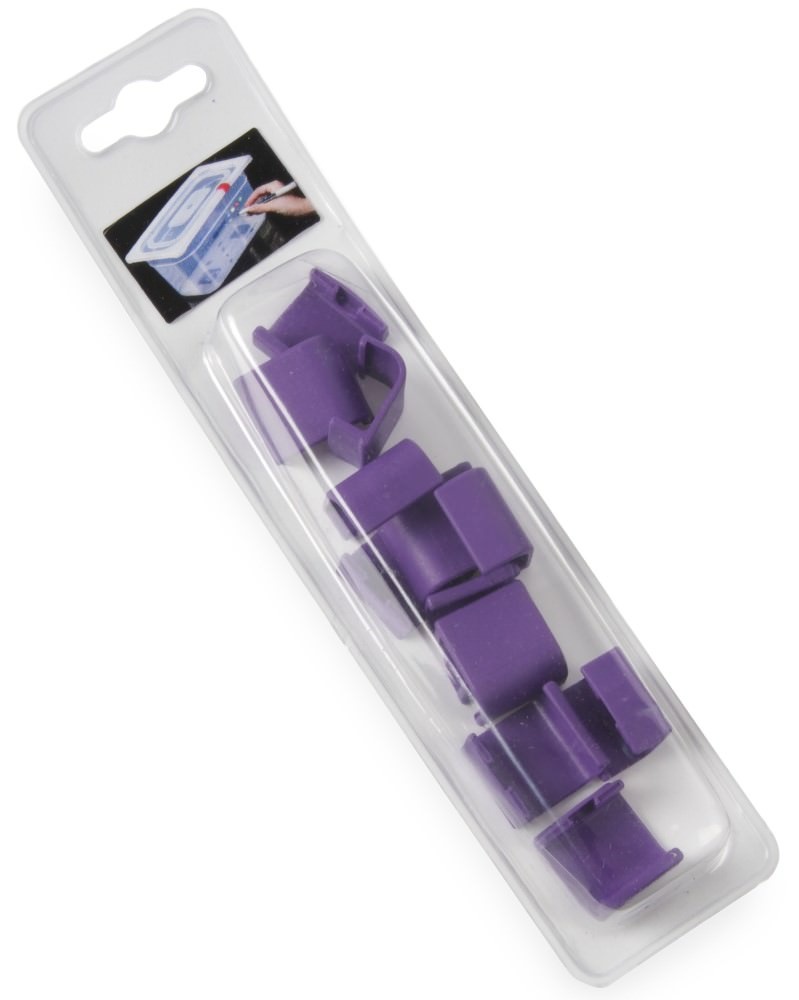 Klipsy do pojemników GN HACCP z poilpropylenu w kolorze fioletowymseria dla alergików. Zestaw 12 sztuk w blistrze