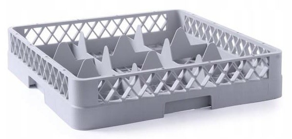 9 elementowy kosz do mycia szkła w zmywarkach, wykonany z polipropylenu.