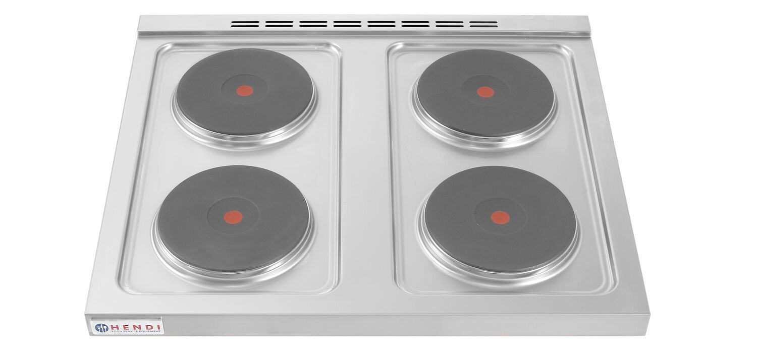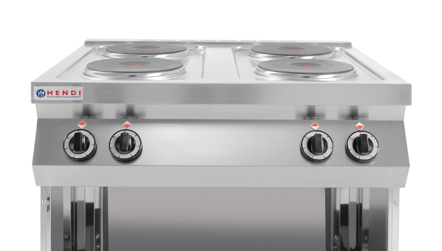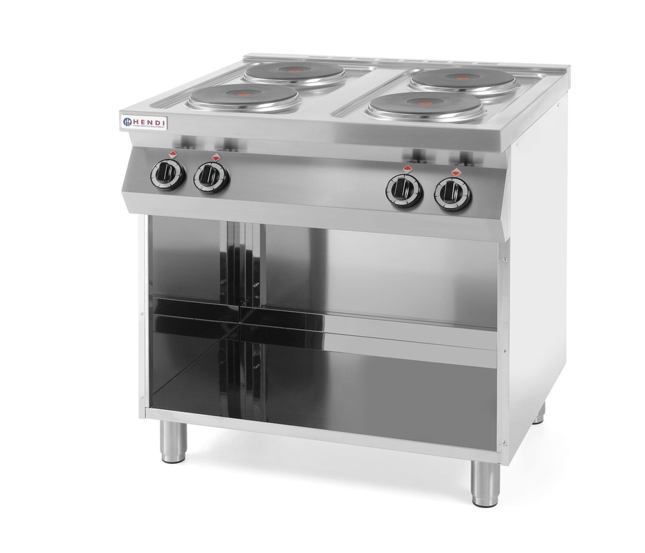 Kuchnia elektryczna 4–płytowa Kitchen Line na podstawie otwartej.