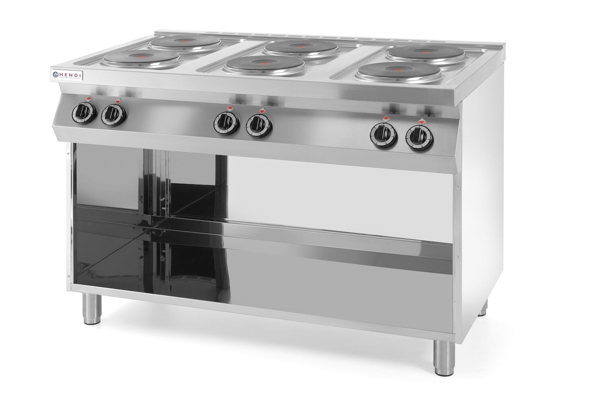 Kuchnia elektryczna 6–płytowa Kitchen Line na podstawie otwartej.
