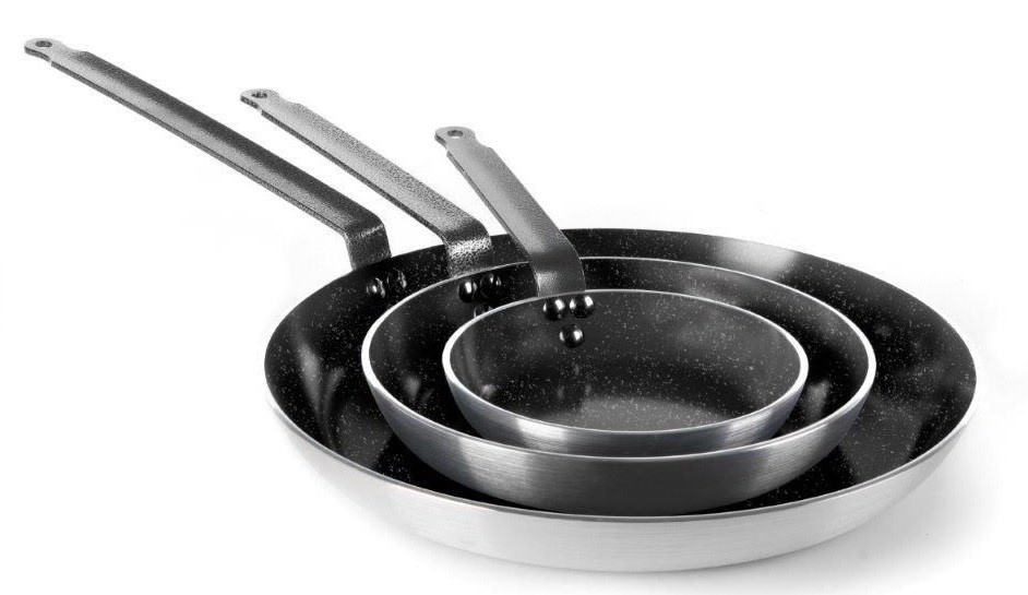- Aluminiowy korpus zapewnia szybkie i równomierne rozprowadzanie ciepła, dzięki czemu patelnia jest gotowa do użytku w krótkim czasie