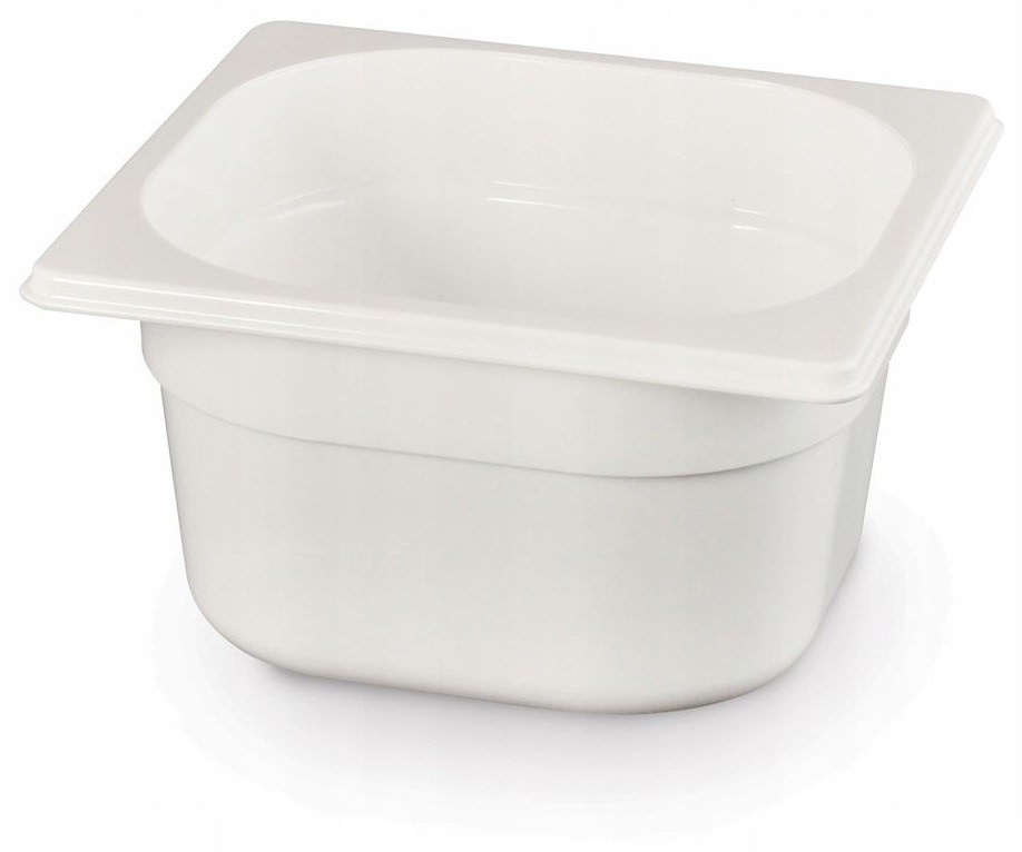 Wysokiej jakości profesjonalny pojemnik GN 1/6 wykonany z białego poliwęglanu. Produkt charakteryzuje się bardzo wysoką jakością wykonania.
