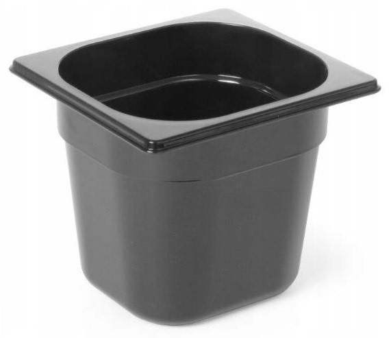 Wysokiej jakości profesjonalny pojemnik GN 1/6 wykonany z czarnego poliwęglanu. Wysokość 65 mm. Pojemnik nie wchłania zapachów i smaków.