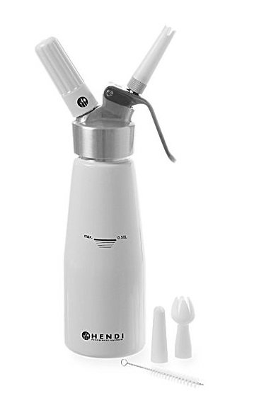 Profesjonalny syfon do bitej śmietany marki Hendi, wygodny i łatwy w obsłudze. Z naszymi syfonami przygotowanie najbardziej fantazyjnych deserów będzie banalnie łatwe. Prezentowany wzór świetnie nadaje się zarówno do profesjonalnej kuchni, jak i do użytku domowego. Umożliwia przygotowanie bitej śmietany, kremów, sosów, musów w sposób łatwy, wygodny i tani, Idealne rozwiązanie dla kawiarni, barów, restauracji, lodziarni, bistro, punktów z goframi.