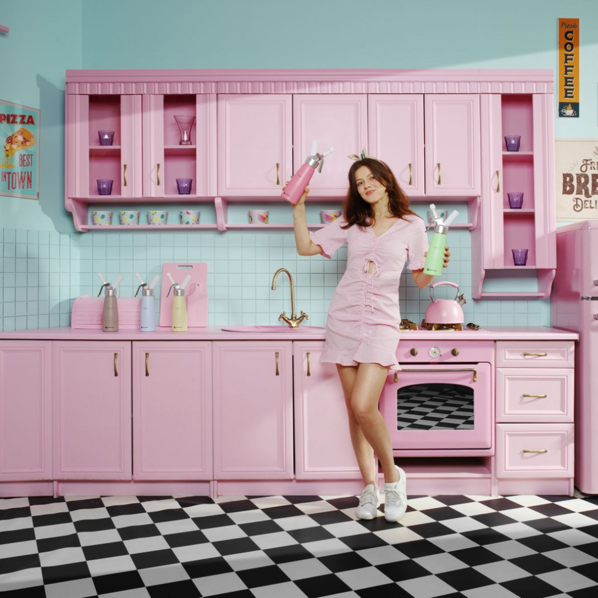 Syfon do bitej śmietany (3 plastikowe końcówki i szczoteczka w zestawie) 0,5 L, różowy, Kurt Scheller Edition