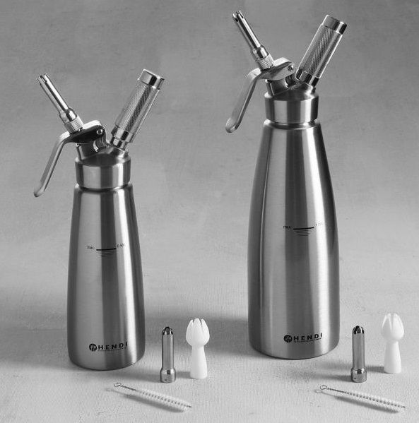 Syfon do bitej śmietany Profi Line 1 l umożliwia przygotowanie bitej śmietany, kremów, sosów, musów w sposób łatwy, wygodny i tani.