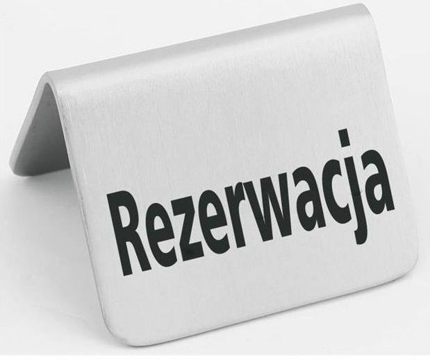 Wykonana ze stali chromowej, dwustronna tabliczka informacyjna – "Rezerwacja".