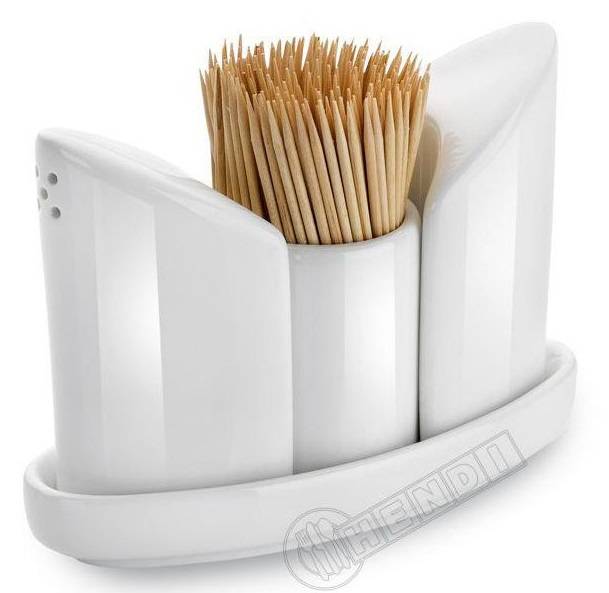 Zestaw do przypraw wykonany z białej błyszczącej porcelany. Jest to najbardziej wytrzymały typ porcelany na rynku. Produkt świetnie sprawdza się w gastronomii oraz w domowych warunkach.