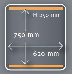 Długość listwy grzewczej: 2 x 620 mm (przód i tył)