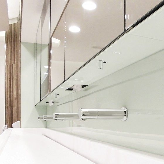 Chromowana końcówka została zaprojektowana w taki sposób, aby lekko wystawała poniżej dolnej krawędzi lustra, dzięki czemu łatwo ją zauważyć. Automatyczna pompa perystaltyczna pozwala na używanie mydła o różnych lepkościach, także w postaci żeli antybakteryjnych.