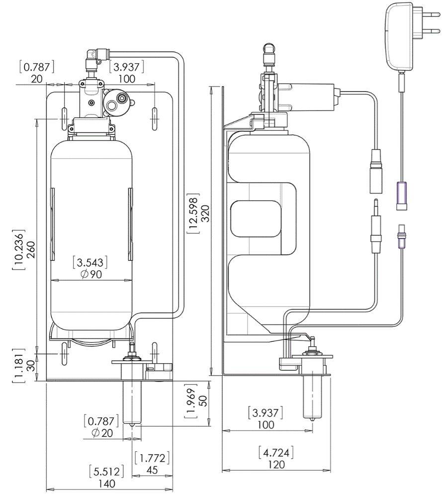 - Wymiary: stal nierdzewna, plastikowy zbiornik