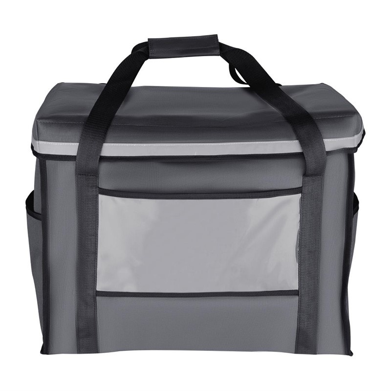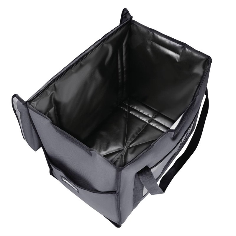 Wymiary 540x360x430mm Składana na płasko, łatwa w czyszczeniu nylonowa torba z okienkiem do identyfikacji karty. Wkładka pomagająca zachować kształt i stabilność torby jest sprzedawana oddzielnie. Gruba izolacja i wysokiej jakości wewnętrzna i zewnętrzna tkanina poliestrowa pozwolą dłużej utrzymać żywność w idealnej temperaturze. Może być używany do obsługi na wynos lub do transportu gorących i zimnych potraw w dużych obiektach. Zewnętrzny; 600 den szary poliester Wewnętrzna; Czarny winyl 300 den Wytrzyj do czysta wewnątrz i na zewnątrz Zawiera odblaskową taśmę dla bezpieczeństwa podczas dostawy Wytrzymały pasek na ramię Gruba izolacja utrzymująca ciepło żywności Kieszeń na bilet Wymiary 540 x 360 x 430 mm Składana konstrukcja ułatwiająca przechowywanie Ładowanie od góry
