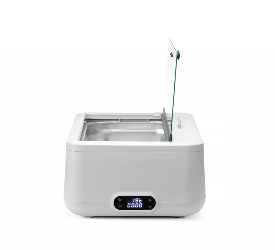 Stylowy i funkcjonalny design stworzony przez holenderskiego projektanta Roberta Bronwassera. Obudowa wykonana z polipropylenu odpornego na wysoką temperaturę. Demontowany wkład GN 1/1 wykonany ze stali nierdzewnej AISI 304, łatwy w czyszczeniu. Grzałka wykonana ze stali nierdzewnej AISI 304, umieszczona we wkładzie na wodę dla wydajnego transferu ciepła. Pokrywa ze szkła hartowanego wyposażona w izolowany uchwyt, wycięcie na chochlę oraz aluminiowy zawias. Specjalna dwuczęściowa konstrukcja pokrywy redukuje utratę ciepła przy otwieraniu, równocześnie zachowując optymalną higienę pracy. Na pokrywie umieszczony uchwyt (holder) na etykietę z nazwą dania. Pokrywa zaprojektowana tak, by odprowadzała skroploną parę wodną z powrotem do pojemnika. Czujnik poziomu wody przypominający użytkownikowi o konieczności uzupełnienia pojemnika na wodę i tym samym zabezpieczający przed przegrzaniem urządzenia. Elektroniczny panel sterowania wyświetlający czas pracy, temperaturę zadaną oraz aktualnie ustawioną temperaturę. Ostatnie ustawienie temperatury jest zapisywane w pamięci i zostaje automatycznie wybrane przy włączeniu urządzenia. Temperatura ustawiana od 35˚C do 85˚C co 1˚. Pojemnik na wodę z zaznaczoną linią maks. wypełnienia, wskazującą na ± 4 l. Nieprzeznaczony do gotowania, służy jedynie do utrzymywania ciepła.