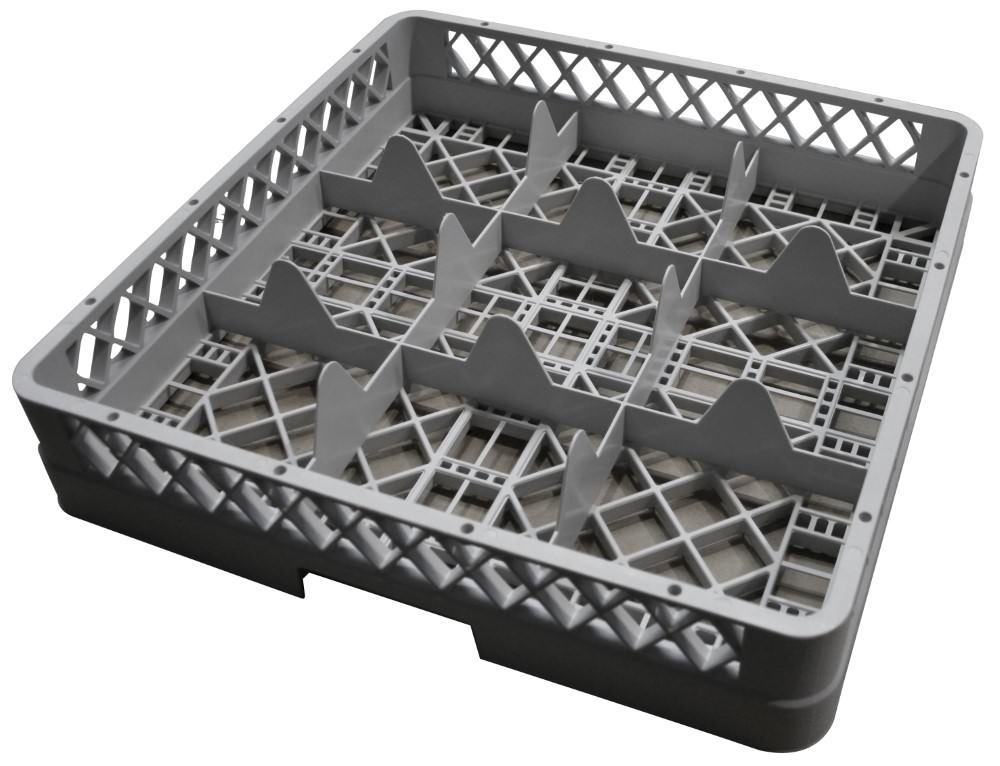 Kosz do zmywarki na szkło 9 przegród / 500 x 500 x 108 mm, szary