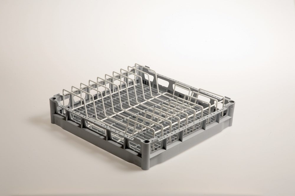 Kosz do zmywarki na talerze 9 przegród / 500 x 500 x 130 mm, szary