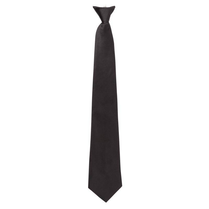 Gładki, czarny krawat z klipsem. Wykonany z poliestru. Krawat można szybko i łatwo przyczepić, jest trudny do rozróżnienia od zwykłych krawatów.