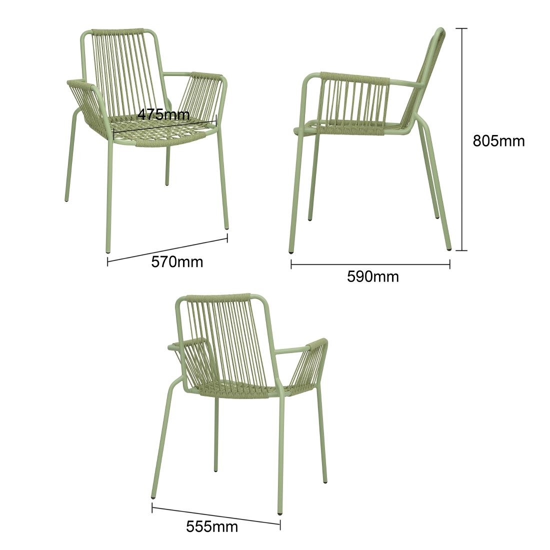 Krzesło 813 mm, do użytku zewnętrznego i wewnętrznego, Bolero Melbourne HZ219, zielone (4 szt.)