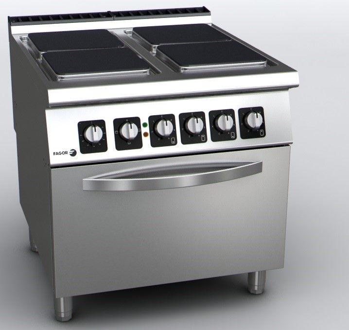 Kuchnia elektryczna z 4 płytami grzewczymi i piekarnikiem elektrycznym GN 2/1, 19 kW