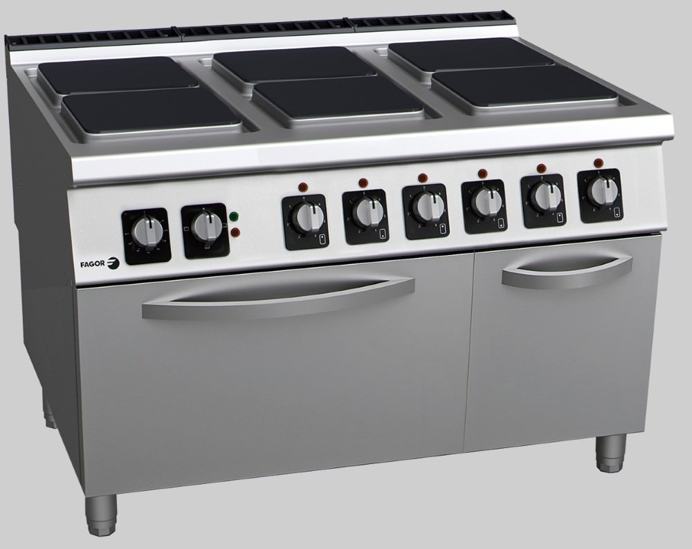 Kuchnia elektryczna z 6 płytami grzewczymi i piekarnikiem elektrycznym GN 2/1, 30 kW