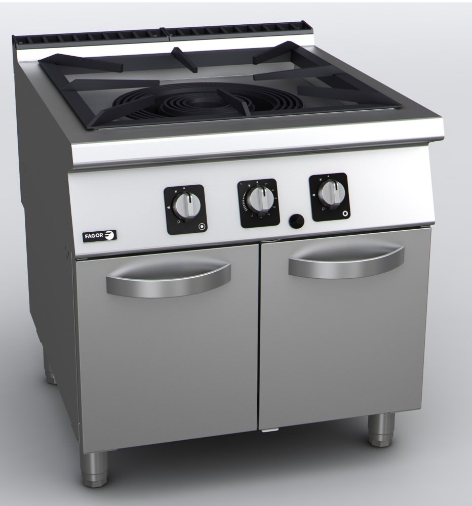 Dwuczęściowy palnik nawierzchniowy (zewnętrzny i wewnętrzny pierścień), zapewniający dużą moc i sprawność. Każda część palnika sterowana za pomocą niezależnego pokrętła. Moc zewnętrznego pierścienia wynosi 11,0 kW, natomiast wewnętrznego 5,5 kW. Nawierzchniowy ruszt o wymiarach 850 x 700 mm wykonany ze stali nierdzewnej. Rynny ociekowe pod palnikiem na tłuszcze łatwo wyjmowalne stanowią integralną część urządzenia. Piekarnik o wymiarach 730x730x330, pilot i termopara, Piekarnik sterowany termostatem w zakresie temperatur 130–350°C.Podmiot odpowiedzialny (GPSR):