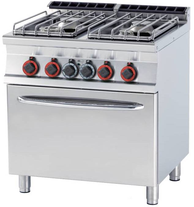 Kuchnia gazowa z 4 palnikami i konwekcyjnym piekarnikiem elektrycznym GN 2/1, 27,32 kW