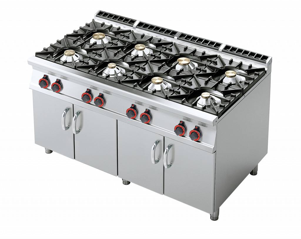 Kuchnia gazowa z 8 palnikami i szafką, 56 kW