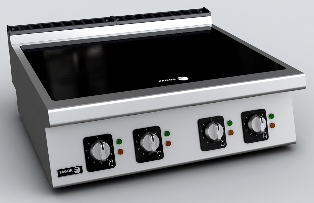 Ceramiczne szkło o grubości 6 mm, hermetycznie zamknięte w blacie ze stali nierdzewnej AISI-304 o grubości 1,5 mm. Obszary gotowania oznaczone okręgiem o średnicy 260 mm, o mocy 5 kW na każdym obszarze, szybkie nagrzewanie i idealne do obsługi à la carte. Idealna kontrola gotowania dzięki regulatorowi energii z 10 poziomami mocy. Działa, gdy wykryje obecność garnka lub patelni. Po zdjęciu naczynia przestaje się nagrzewać. Bezpieczeństwo przed przegrzaniem. Komunikaty o błędach wyświetlane za pomocą migających lampek. Dostęp do komponentów od przodu. Urządzenia z ochroną przed wodą klasy IPX5. Cztery obszary gotowania oznaczone okręgiem o średnicy 260 mm o mocy 5 kW na każdym obszarze.Podmiot odpowiedzialny (GPSR):