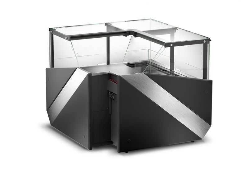 Lada chłodnicza RAPA model X wyróżnia się systemem otwierania szyb na siłownikach typu lift-up. Konstrukcja opiera się na anodowanych profilach aluminiowych w kolorze głębokiej czerni. Zainstalowane w systemie siłowniki zostały dobrane indywidualnie do wymiaru urządzenia, aby zapewnić najwyższy komfort otwierania szyb czołowych oraz eksploatacji lady chłodniczej.Powierzchnia ekspozycyjna o głębokości 75 cm