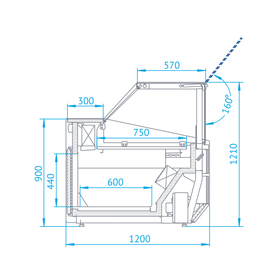 Lada chłodnicza, szyba gięta od 1 do 10 °C, 1345x1200x(h)1210 mm
