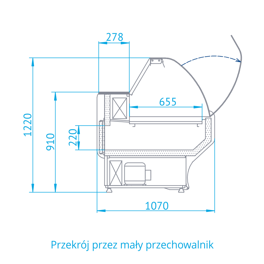 Lada chłodnicza, szyba gięta od 1 do 10 °C, 2020x1070x(h)1220 mm